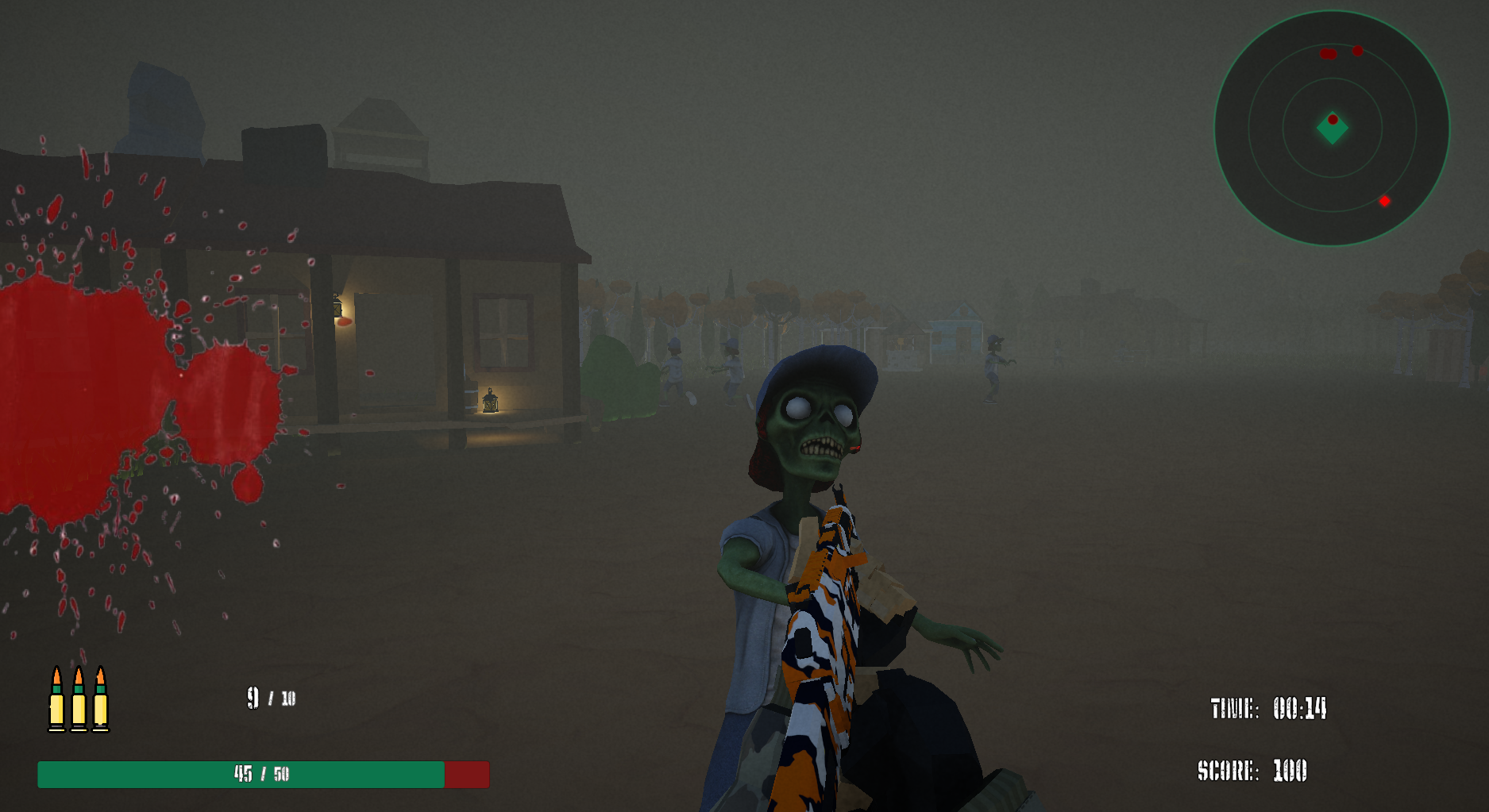 - Shoot incoming zombies to survive
